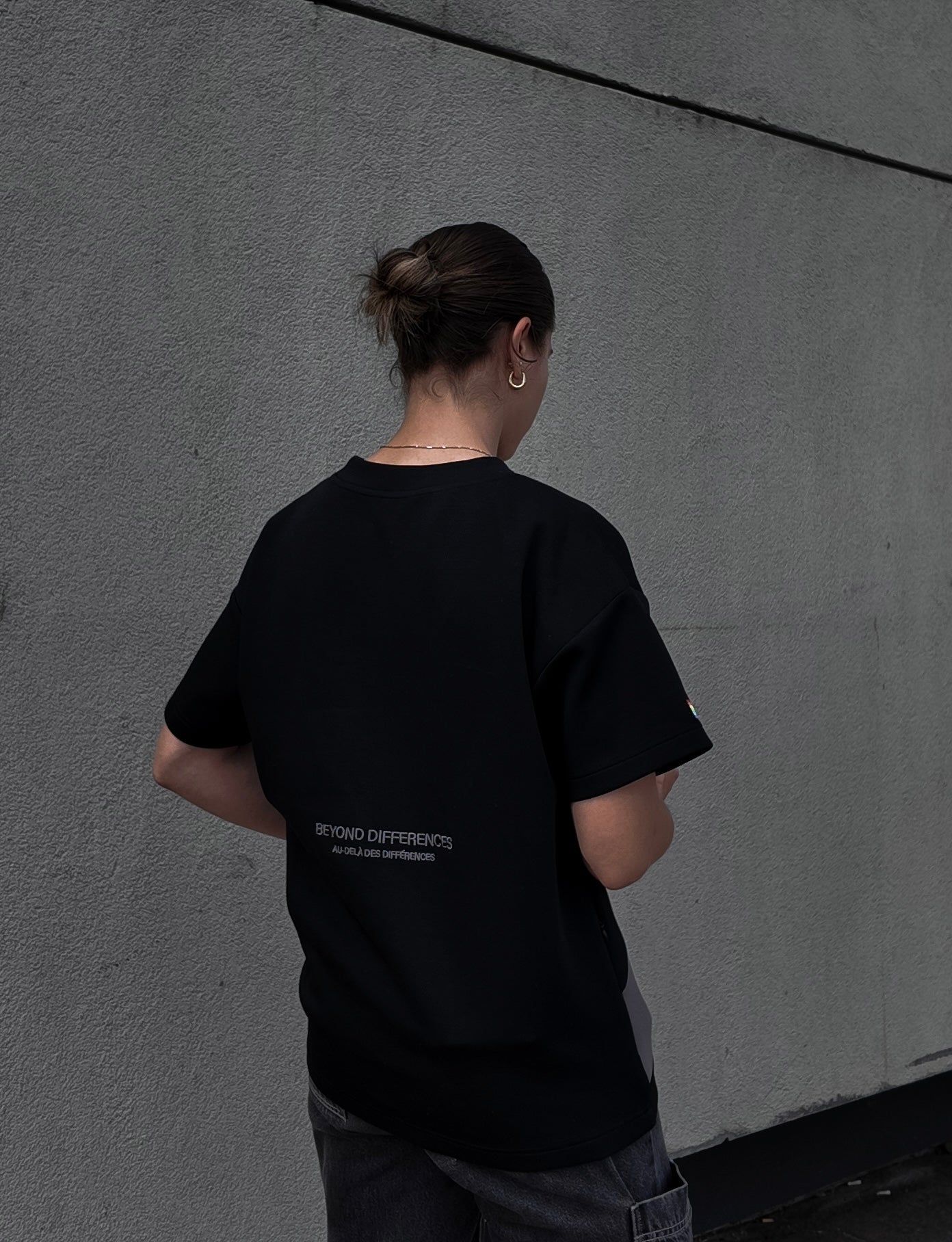 Une petite broderie dans le dos qui incarne un slogan d’ouverture et d’inclusion.