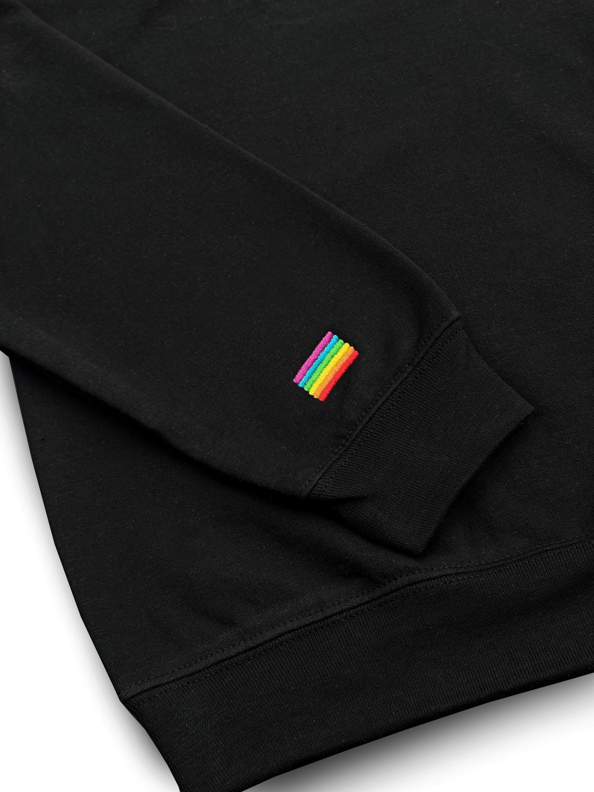 Pour ceux et celles qui souhaitent afficher leur fierté de manière subtile, nous proposons l’option du drapeau LGBTQ brodé sur la manche droite.
